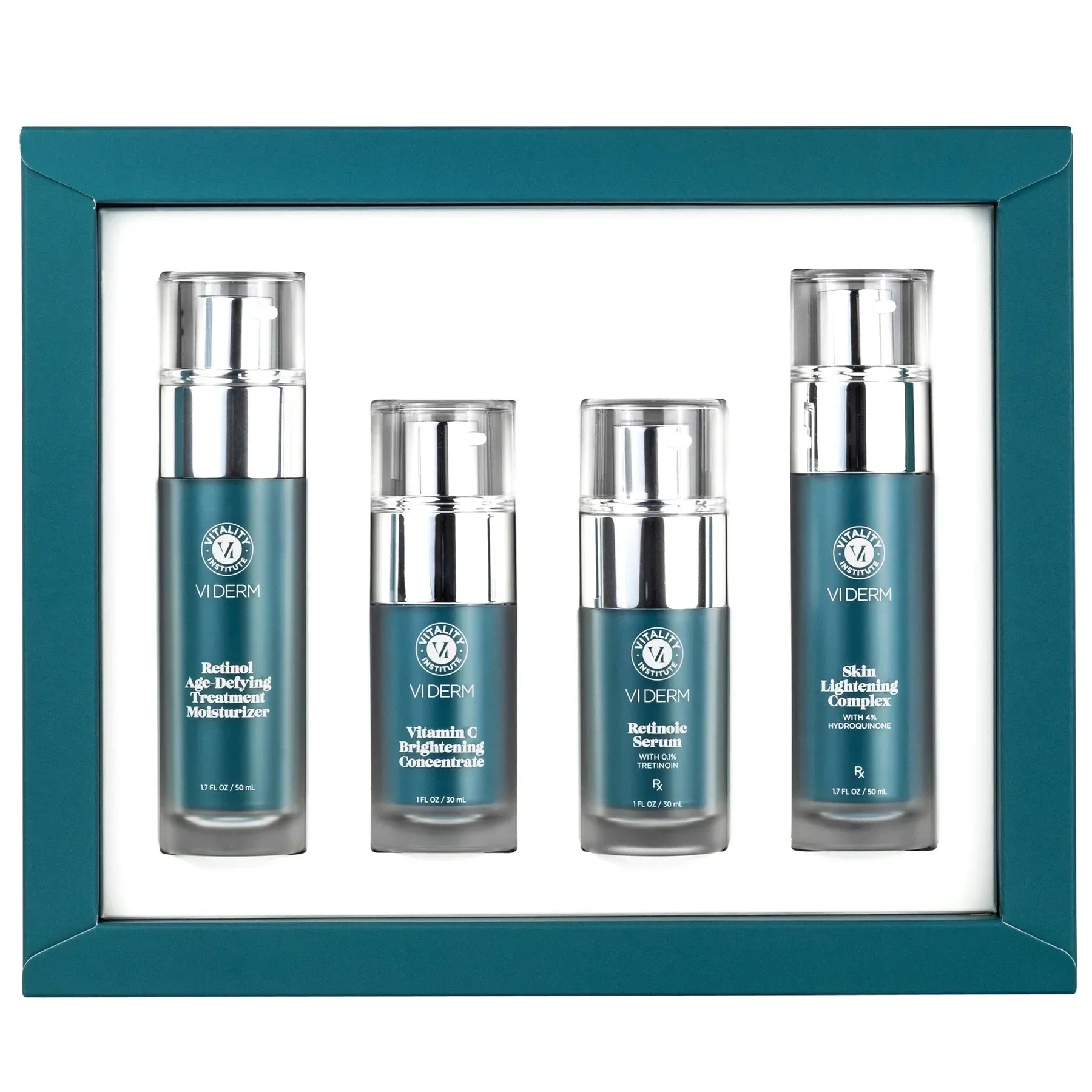In the PM: Retinoic Serum speeds results on wrinkles and rough texture while revealing radiant, more vibrant skin. Skin Lightening Complex 4% Hydroquinone stops excessive pigment at the source (the cellular level) while gentle retinol blend encourages cell turnover to speed surface renewal.